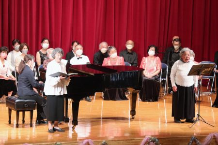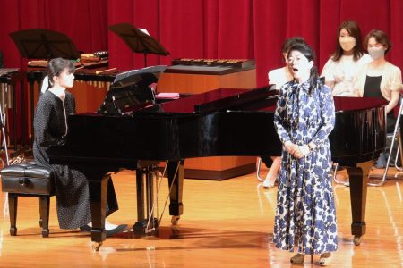 11月12日(土)に「第1回童謡・唱歌・日本歌曲フェスティバル」を開催し、1歳のお子様から80代の方まで幅広い年齢層の22組約100名の皆様に、歌を披露していただきました。ご家族やご友人、お仲間と一緒に伸びやかに歌われる姿に、観客席も時に笑顔が溢れたり、時にしみじみと聞き入ったりと、大いに楽しまれている様子が見られました。全体合唱では、誰もがなじみのある童謡メドレーや日本抒情歌集の曲で会場が一体に。全体講評では、本学名誉教授 藤尾清信先生より、「何も講評することはない。皆さん素晴らしかった」と絶賛のお言葉がありました。