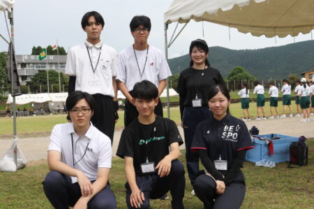 体育祭予行練習の補助を行った学生(川内中央中学校)