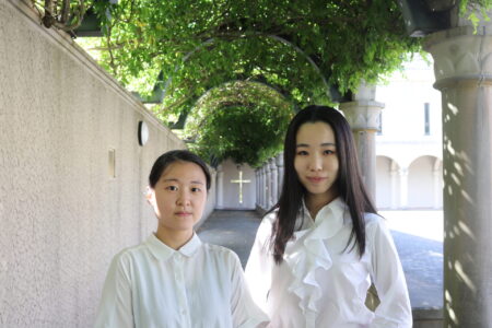 永松花梨さん(健康栄養学科3年)と遠矢梨花さん(健康栄養学科1年)