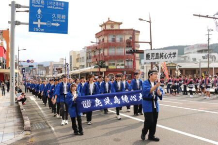 また、本学の踊り連以外でも、放送研究会の学生がメイン会場とサブ会場での司会、そして本学卒業生が薩摩川内市親善大使として活躍しました。