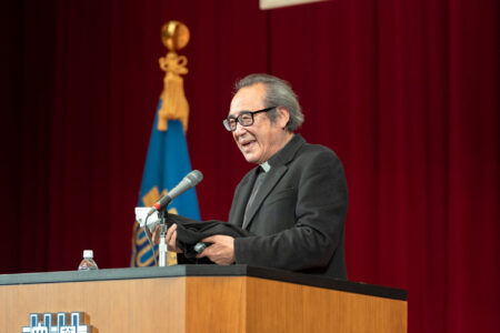 3月13日(金)、今年度卒業する全学科4年生に向けて、本学で受講する最後の「特別セミナー」を開催しました。講師に長崎南山高等学校校長の西経一先生をお迎えして、「母なる者の愛と使命」のテーマでご講演いただきました。愛の本質、言葉や笑顔の大切さ、人との関わり方などをご教示いただき、4年生にとって、学生生活を振り返り、4月からの生活に向けて気持ちを新たにする時間となったのではないでしょうか。