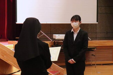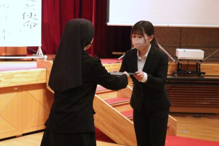 表彰状伝達式もあり、山口明美学長から受賞者に賞状が渡されました。4年間の歩みに心からの祝福を贈ります。