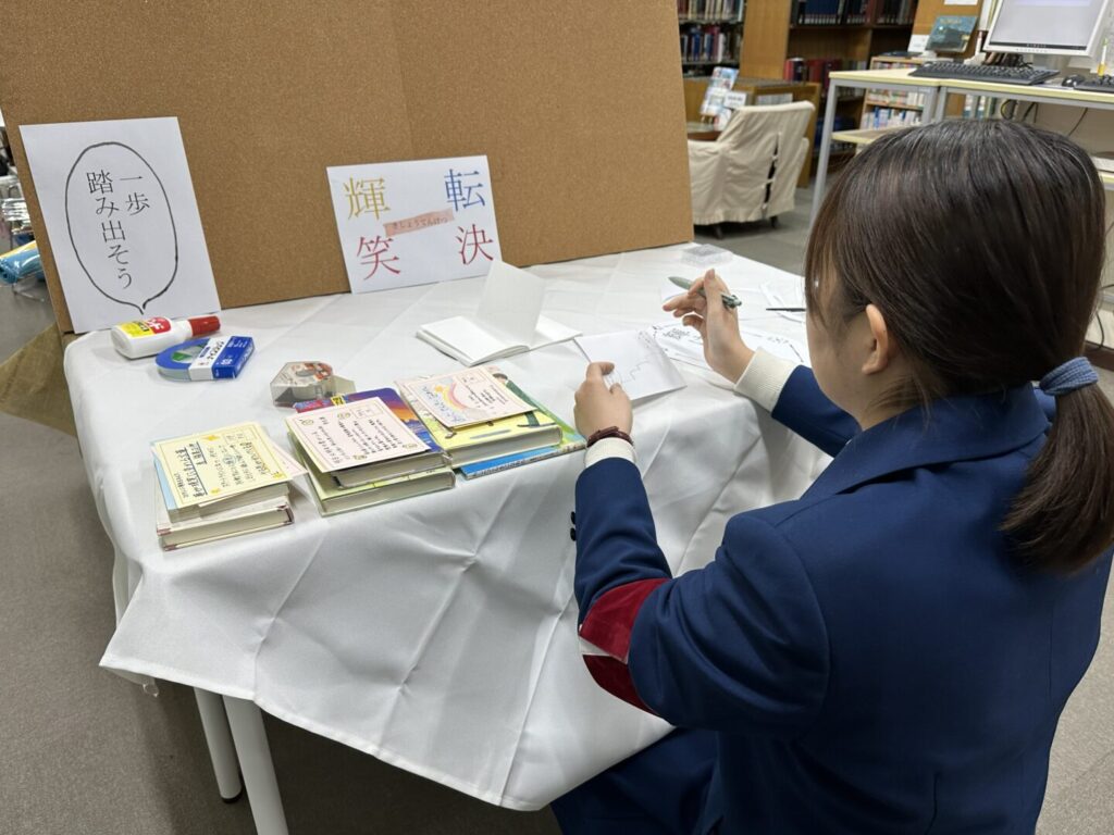 図書館は、多くの工夫や支えによって利用者が多様な本と出合える環境がつくられていることを学びました。また、正確に作業を行う大切さや、本の魅力を相手に伝える難しさと楽しさを実感しました。今回の経験を通して学んだことを今後の学習や活動に生かし、相手の立場に立って物事を考え、分かりやすく伝える力を身に付けていきたいと思います。